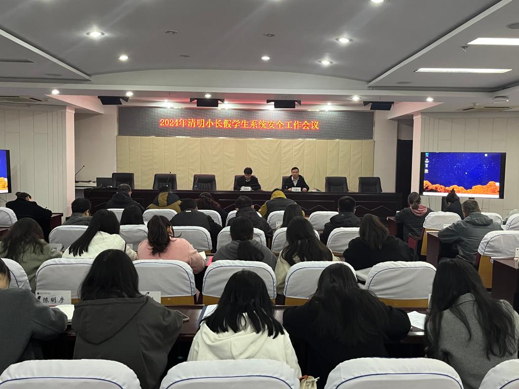 为保证小长假期间校园的安全稳定,2024年4月2日上午9:30,学校召开了清明小长假学生系统安全工作会议。