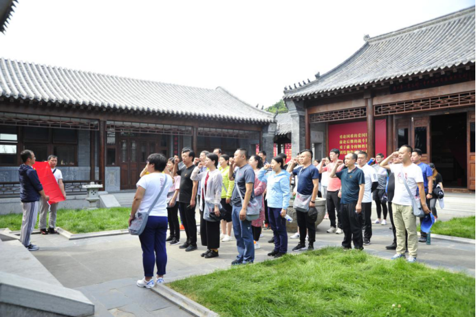 在中共满洲省委开原支部党史陈列馆的宣誓广场,全体党员面对党旗庄严宣誓,重温了入党誓词。